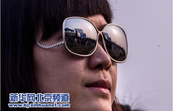 演出现场的景象映在一位观众的墨镜上。(图片来源:张宇/新华社)