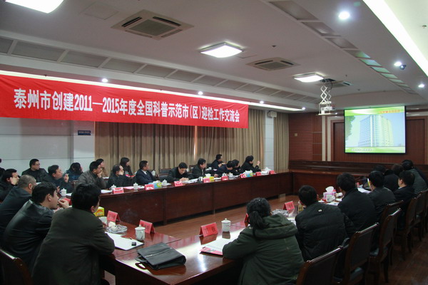 为迎接3月下旬江苏省科协对各市区创建“2011-2015年全国科普示范市”工作进行检查验收,2月25日,泰州市创建2011—2015年度全国科普示范市(区)迎检工作交流会在我市召开,来自四市两区的科协负责人在参观完我市创建现场,听取创建工作汇报后,对我市创建工作给予了充分肯定。