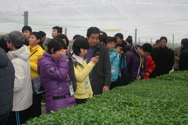 同学们通过观看 “高效农业在新街”专题片,了解了新街镇高效农业的创建发展过程;通过参观展示中心和温室大棚,了解了蔬菜栽培、种苗培育、复种化种植模式等知识,切身体验了寓观光、休闲和生产于一体的高效生态农业,对科学技术促进农业发展有了更深的认识。