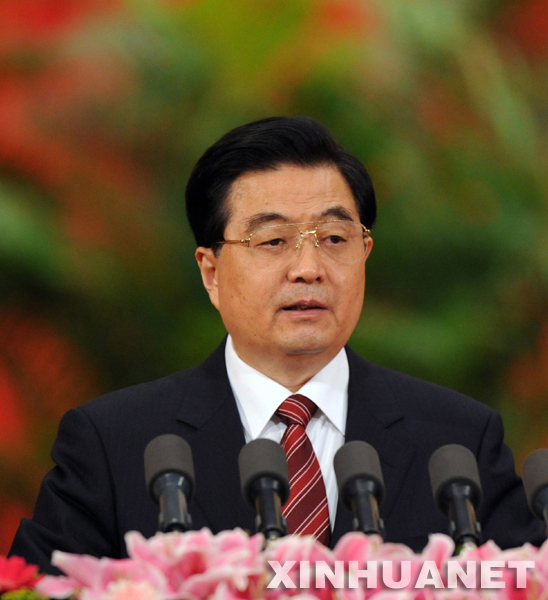 12月15日,纪念中国科协成立50周年大会在北京人民大会堂举行。中共中央总书记、国家主席、中央军委主席胡锦涛在会上发表重要讲话。新华社记者饶爱民摄