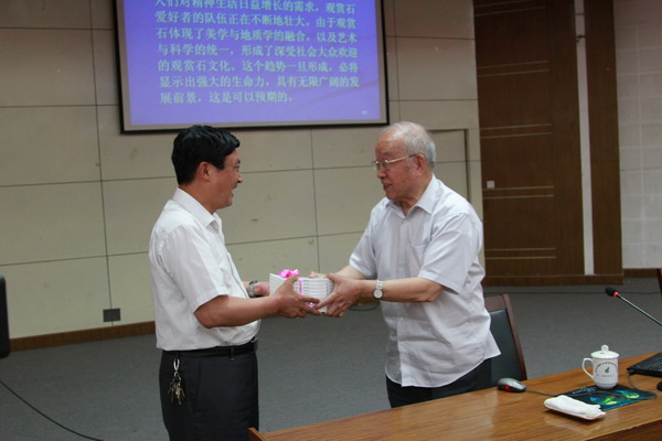 王院士从观赏石的定义,火成岩、沉积岩、变质岩三类岩石的特性、观赏石的类型和观赏石的成因等四个方面,给全市各中小学科技校长、科技辅导员以及襟江小学全体师生作了精彩的报告,让大家开阔了眼界,增长了见识。
