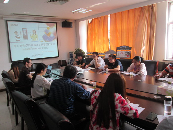 9月14日下午,泰兴市科协举办全媒体科普阅览屏管理员培训班,指导大家如何正确使用刚刚安装到各基层单位的20台全媒体科普阅览屏.
